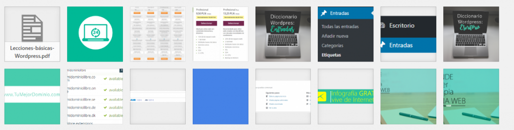 En este diccionario WordPress no me voy a extender mucho, ya que la sección de Medios o biblioteca multimedia no presenta mucha complicación, en resumidas cuentas es donde se almacenan todos las fotos, vídeos y archivos que has subido a tu página web.